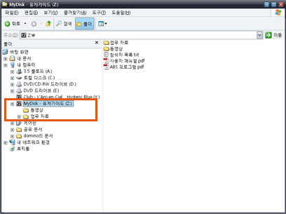 | 2. 윈도우탐색기 최초 실행 시 My Disk 드라이브가 생성됩니다. 새로운 드라이브를 생성하면 로컬 하드디스크 드라이브와 동일한 작업 환경을 제공하므로, 별도의 업로드, 다운로드 과정 없이 파일을 편집할 수 있습니다. |