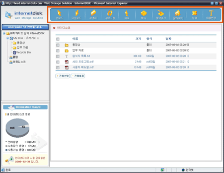 인터넷디스크 웹 사이트 로그인 후