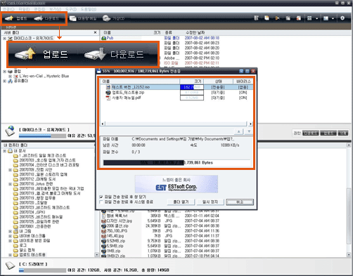 업로드 또는 다운로드 할 폴더 및 파일을 선택 한 후 [업로드],[다운로드] 버튼을 클릭합니다.