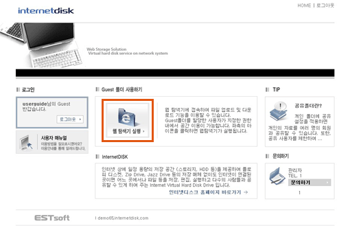 웹 탐색기를 이용하여 Guest폴더에 설정된 권한 내에서 파일을 업로드, 다운로드, 삭제 할 수 있습니다. .
