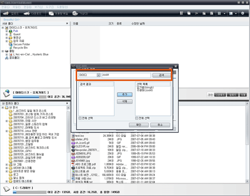 공유 제공자 관리의 추가버튼을 이용하여 사용자를 검색하고 추가할 수 있습니다.