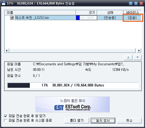 (주)이스트소프트의 알약 바이러스 엔진 탑재하여 전송중인 파일에 대해 바이러스를 검사/치료합니다. 로그인 과정에서 알약 최신 버전을 다운로드 함으로써 업데이트를 따로 설정할 필요가 없습니다.